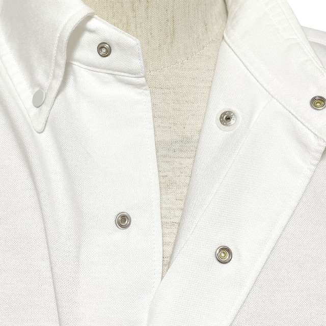 ゆったりとしたシルエットのボタンダウンシャツ。プランサーボタンを採用し、ヴィンテージシャツのような袖下のふくらみがある袖が特徴です。 高機能素材のクールマックス糸を使用した、綿/ポリエステルのオックスフォード生地を使用。初夏まで快適に着られる清涼感のある着心地です。