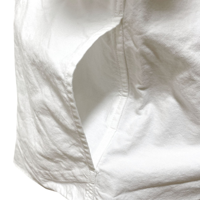 DANTON定番の半袖のプルオーバーシャツ。 ややワイド目なサイズ感で、クラシカルな丸襟や大きめの釦が特徴です。両サイドの脇にポケットを配し、機能的なデザインでデイリーウエアとしても重宝します。袖口は折り返しの仕様となっており、スタイリングのアクセントになります。 スーピマ原料のオックスフォード素材で、毛羽が少なく光沢のある表面感が特徴。しなやかかつ、シャキっとした手触りと程よい肉感も特徴です。