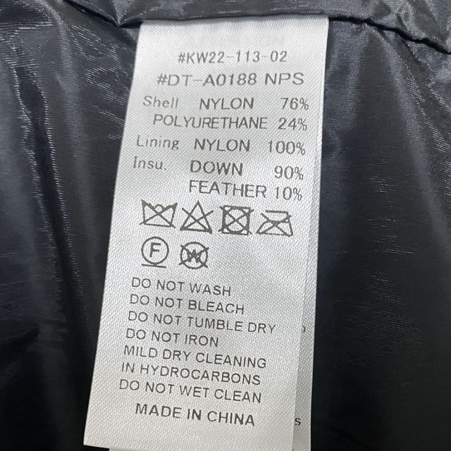 素材:表地:ナイロン76%ポリウレタン24% 裏地:ナイロン100% 詰物:ダウン90%フェザー10%