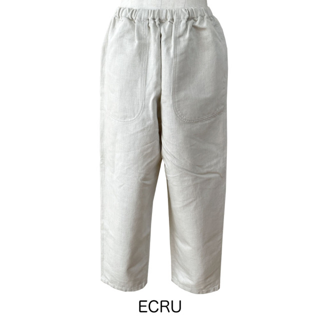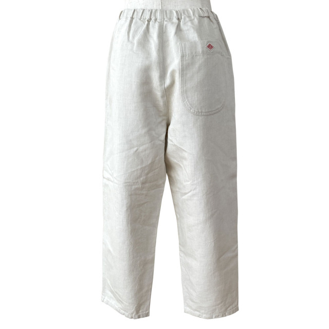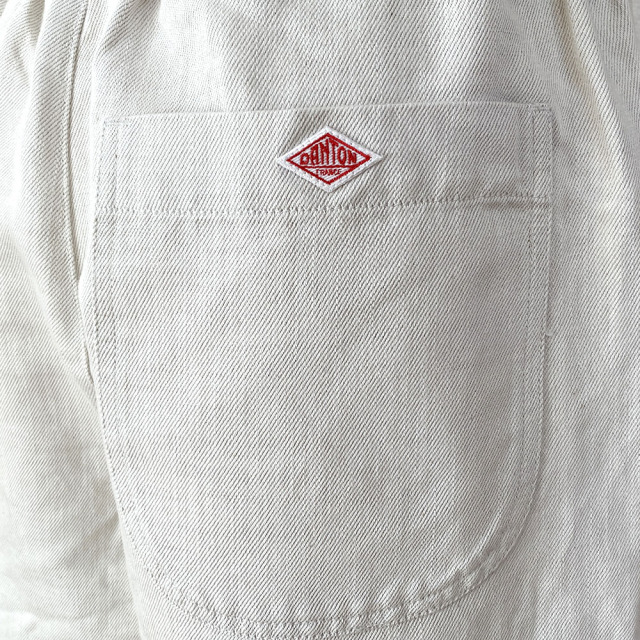 DANTONの定番のイージーパンツ。 プルオン仕様、クロップド丈のイージーパンツで、裾に向かってテーパードがかかったシンプルなデザインは、すっきりとしたバランスの良いコーディネイトができ、様々なトップスに合わせることができるアイテムです。 前後に付いた丸みのあるポケットがアクセントになっています。 経糸に綿、緯糸に麻を使用した綿麻のツイル素材です。 綺麗な目面としっかりとした風合いが特徴です。