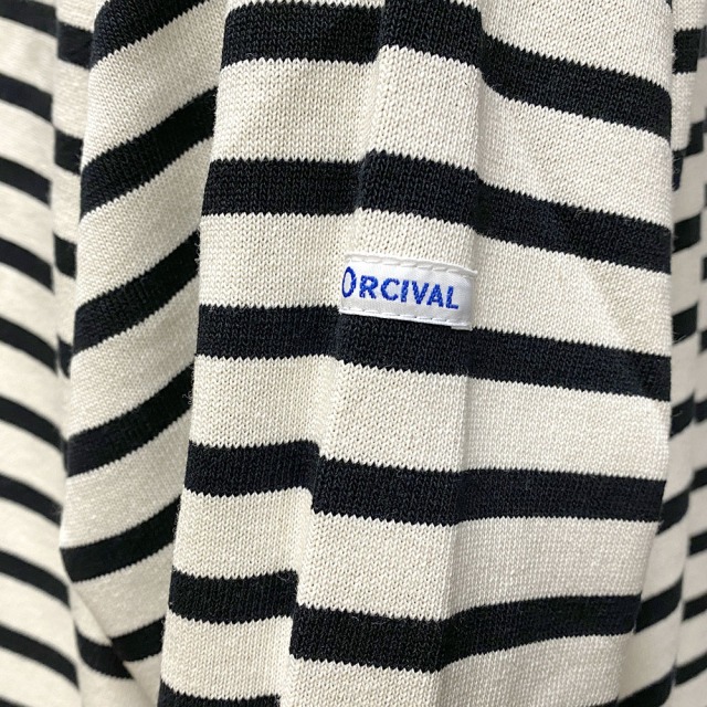 ORCIVAL定番のCOTTON LOURD生地を使用した、ワイドシルエットのモデルです。 ゆったりとした身幅は裾に向かって少し広がりをもち、適度に肩をドロップさせています。 ORCIVAL定番のCOTTON LOURD素材。 16番手の空紡糸(空気紡績と呼ばれる技術により作られる糸のことで、オープンエンドヤーンとも呼ばれます。) を使用した、独特のざっくりとした表面感が特徴です。 カットソーの他にデニム素材などでもよく使用されている糸を、2本引き揃えて天竺編みで編み立てた素材は、しっかりとした肉感で丈夫な素材です。