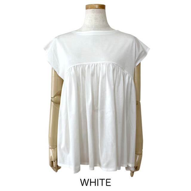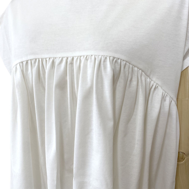 布帛ライクなジャージー素材を使用したギャザーチュニック。 たっぷりのギャザーがデザインのポイントです。 通常のジャージー素材より、伸度を抑え、布帛のような風合いに仕上げたジャージー素材になります。シャツ地のような張り感と、軽やかさが特徴です。