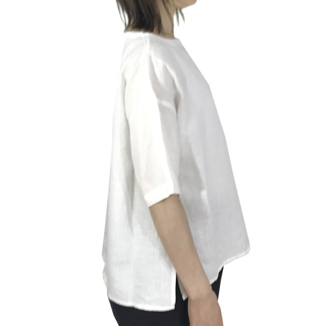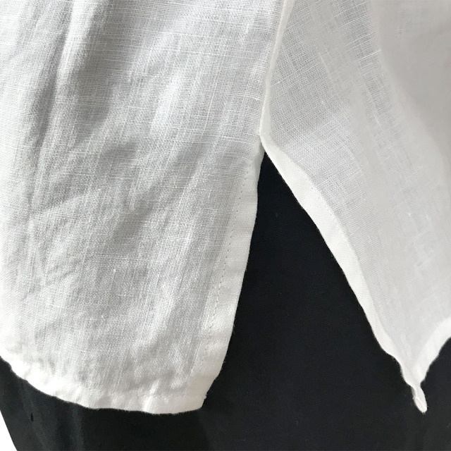 ゆとりのあるシルエットのボートネックプルオーバーシャツ。 両裾の深めに取ったスリットがアクセントです。 40番手のリネン素材を、ゆっくりと時間をかけ染色したのち、麻特有の硬さをなくすために生地を洗いざらしのように仕上げるタンブラー加工をした平織素材。肌触りの良い、ふっくらとした素材になっています。