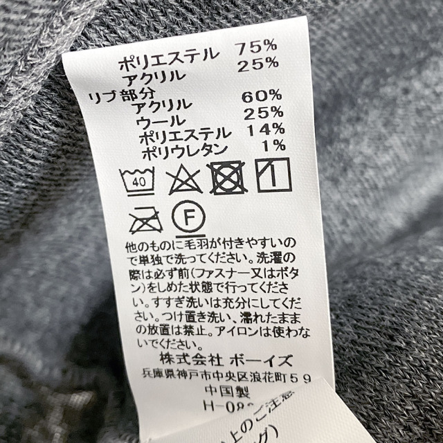 素材:本体:ポリエステル75%アクリル25% リブ部分:アクリル60%ウール25%ポリエステル14%ポリウレタン1%