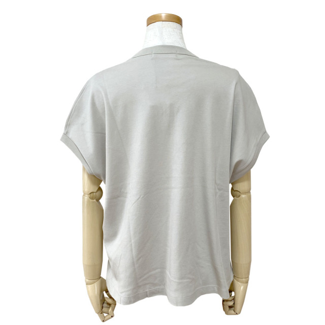 セミ・フレンチスリーブで腕周りがキレイにみえるデザインカットソー。ゆとりをもたせたリラックスシルエットです。衿ぐり、袖ぐりを共地のバインダーで包み、カジュアルな印象のアクセントを加えています。 上品な光沢とやわらかな肌触りが特徴のスムース素材。毛羽立ちが少なく強度にも優れたコンパクト糸を使用しています。