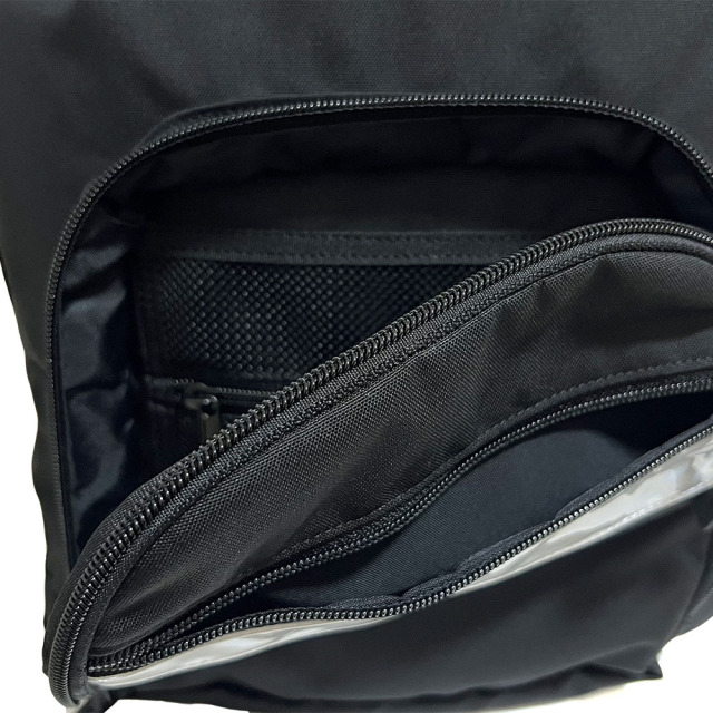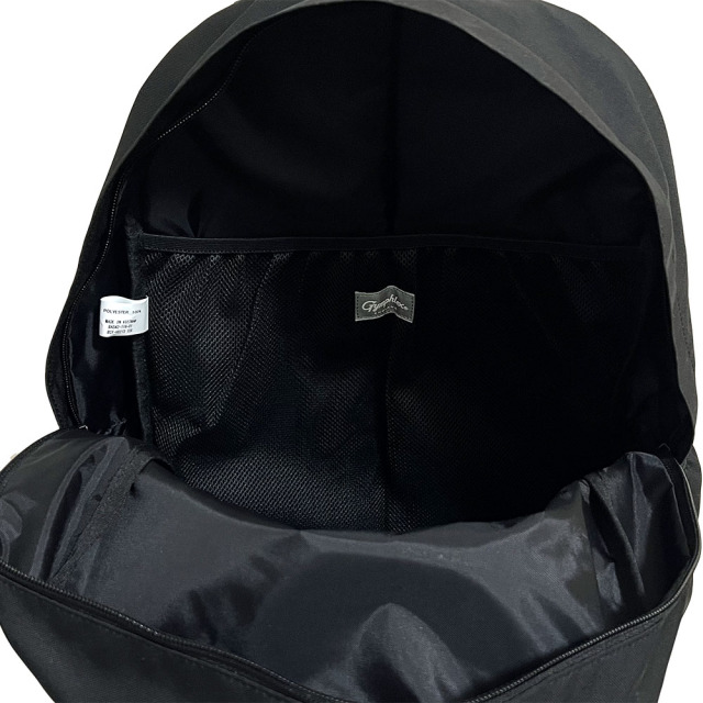 大きめの開け口で荷物の出し入れのしやすいバックパックです。フロントポケット内部はファスナー付きのメッシュポケットが付いており、小物入れとしても活用いただけます。 600Dの程よい厚みがあり、弱撥水加工を施しています。ざっくりとした表面感のオックスフォードです。