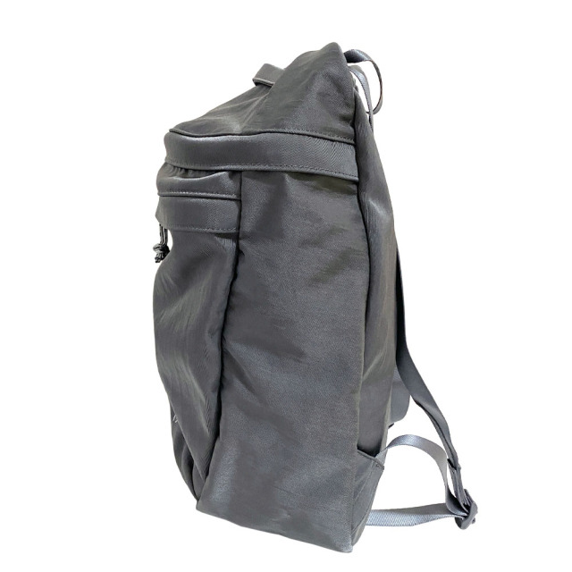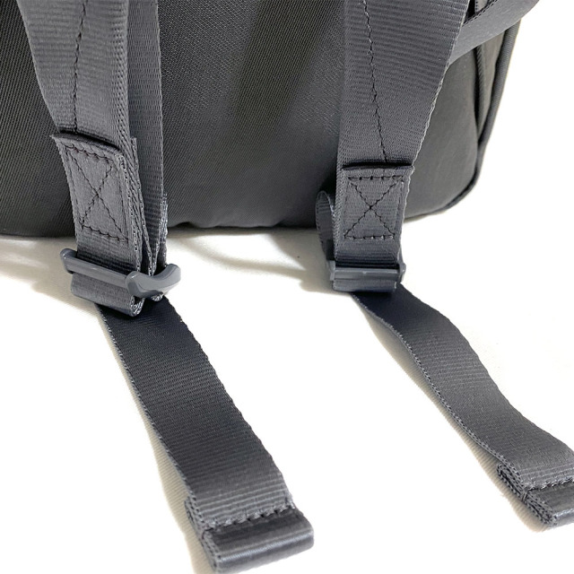 ワントーンで統一したバッグパックです。通勤や通学で手軽に使えるサイズ感ですがフロントの大きなポケットや内側のメッシュポケットなど小さいながらも機能性に優れています。 撥水、ワッシャーコーティングを施した光沢感のあるナイロンツイル素材です。