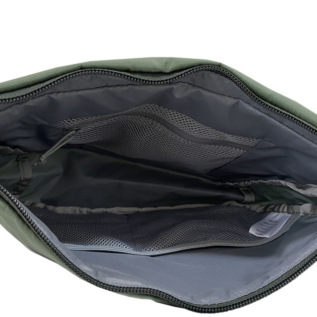 デイリーユースからハイキングなどのアウトドアフィールドまで、幅広いシーンで使いやすいショルダーバッグです。 500mlボトルや手帳なども収納可能な5L容量。本体内部には、小物の仕分けに便利なスリットポケットとファスナー付のメッシュポケットを備えています。 メインファブリックには、リサイクルナイロンを採用して環境に配慮。体に寄り添うデザインと、本体内部に収納できるショルダーベルトのテープエンド仕様は、見た目にもスマートなアイテムです。