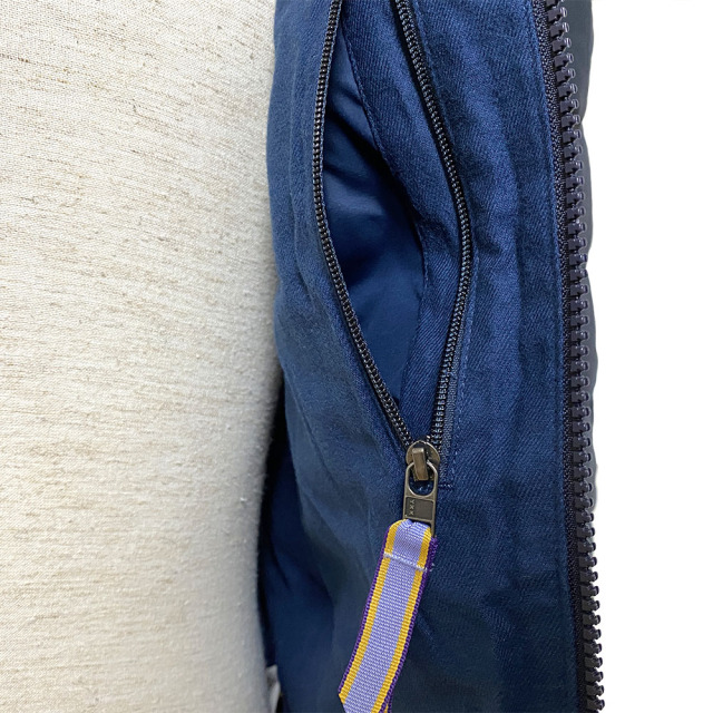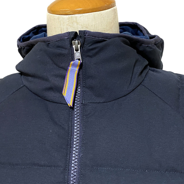 素材:本体:平織りの表面を起毛させた6.2オンス・コットン・イン・コンバージョン100%。胴部とフードの裏地:4.7オンス・コットン・イン・コンバージョン100%のフランネル。袖の裏地:2.2オンス・リサイクル・ポリエステル100%のタフタ。ハイキュ・エコ・ドライ・PFCフリーDWR加工(フッ素化合物不使用の耐久性撥水コーティング)済み。インサレーション:600フィルパワー・リサイクル・ダウン100%(ダウン製品から再生されたダックダウンとグースダウン)。袖の裏地はブルーサインの認証済み。フェアトレード・サーティファイド工場で製造