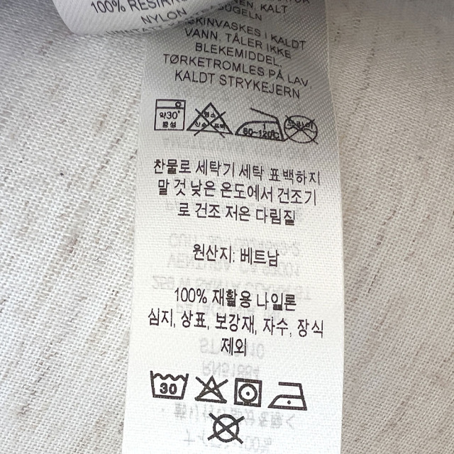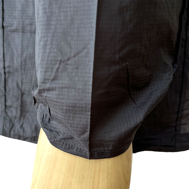 素材:1.2オンス・リサイクル・ナイロン100%のリップストップ。有機フッ素化合物(PFC/PFAS)不使用のDWR(耐久性撥水)加工済み。無地はブルーサインの認証済み。フェアトレード・サーティファイドの工場で製造