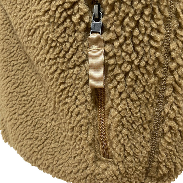 5.3オンス・リサイクル・ポリエステル100%の起毛トリコット。裏地と縁取りはブルーサインの認証済み。フェアトレード・サーティファイドの工場で製造