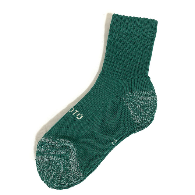 「日々、つい手に取ってしまうソックス」というイメージで作り上げたEVERYDAY PILE シリーズ。コンパクトヤーンと呼ばれる、毛羽が出にくい太番手のオーガニックコットン糸を使用し、希少なローゲージのパイル編み機で編み立てています。足底の心地よいパイル編みとソフトなフィットで、着用によるストレスを軽減。幅広いシーズンに着用できるよう、長すぎない程よい丈感に仕立てました。毎日の気分を盛り上げてくれそうなポップなカラーバリエーションも魅力です。