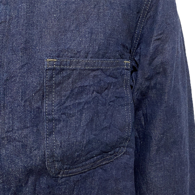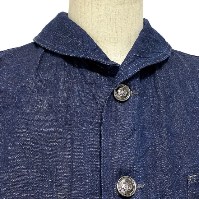 U.S.NAVYにて1940年代頃に甲板作業用の制服として採用されていたショールカラーカバーオールをもとにデザインされたジャケットです。本来ミリタリー由来のワークウェアをフックベントやラウンドカット、総裏仕立てにしてブレザーの様な雰囲気も併せ持ったジャケットになっています。