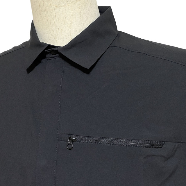街のリズムをまとったスカイライン。すっきりとしたシルエットが際立つ比翼仕立てのスナップフロント、深みと先進的なスタイルを演出するメランジで仕上げました。軽量で通気性のあるディエムポリエステルは、速乾性に優れた涼感が得られる素材。リサイクル素材を100%使用しています。伸縮性と立体構造が生み出すフィットは、動きやすさに貢献。胸元のジップポケットにはスマートフォンやパスポートを安全に収納できます。 改良したフィットでアップデートしました。