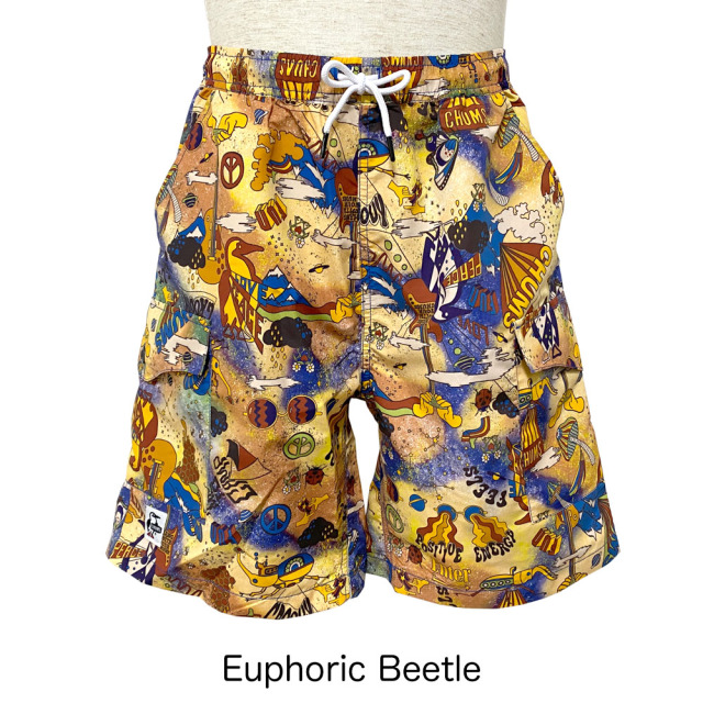 CHUMSの夏定番ショーツ「Plunge Divers」のカーゴタイプ。「Plunge Divers」と比べてルーズなシルエットで、ウエストはゴムと紐で調節可能なイージーな穿き心地。半メッシュ仕様のポケットが4つ付いており、右ポケット内にはベルクロ付きの隠しポケットも装備しているので収納力も◎水陸両用なので、海やプールなど水辺のレジャーにもオススメ!チャムスらしいポップなカラーリングや総柄デザインの展開もあり、日常使いはもちろんアウトドアでも活躍する万能ショーツです。乾きが速く水はけの良い撥水機能を持った素材を採用。薄手でライトな素材感のため、気温の高い時期でも穿きやすいのが魅力。デイリーでもアウトドアでも汎用性高く活躍します。