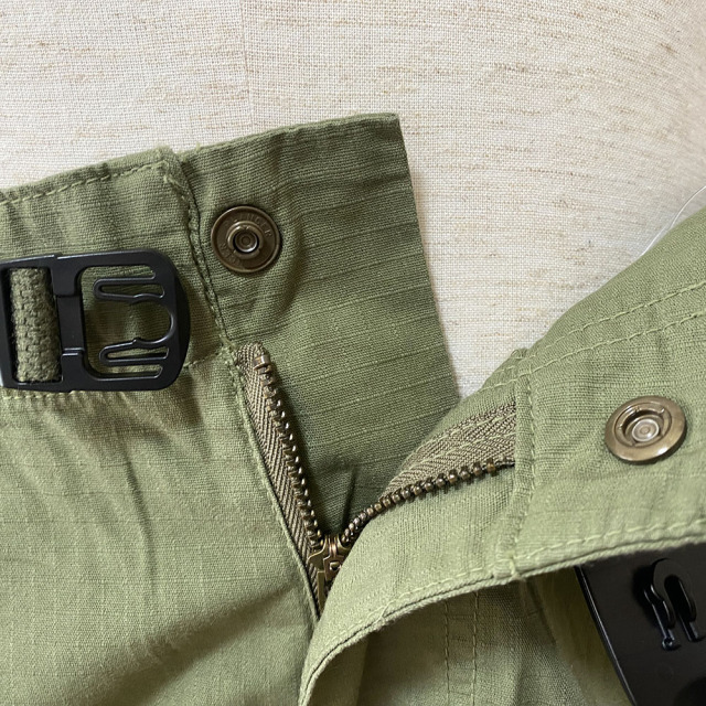 ミリタリーアイテムをCHUMSらしくアレンジした“Layton(レイトン)シリーズ”のカーゴショートパンツ。M-65フィールドパンツをリメイクしたような膝丈のワイドシルエットが特徴的。左ポケットにはCHUMSの合言葉「HANG WITH YOUR CHUMS」を刺繍したベルクロを配し、同シリーズの“Layton Oversized Jacket”のロゴワッペンを取り付けられる仕様に。