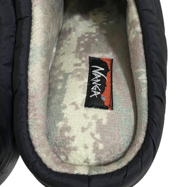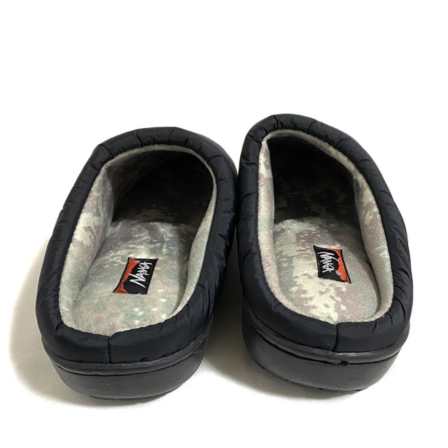 NANGA×SUBUコラボアイテム。技術を融合させた秋冬用サンダル。生地にはナンガ独自の防水透湿素材”AURORA-TEX”を採用し、オリジナルテイストに仕上げております。“AURORA-TEX”を採用することで、雨水からの濡れを軽減して、アブストラクトカモ柄をプリントとした起毛加工で内側の保温性を担保してくれます。また4層構造のインソールが抜群の履き心地をつくりだしてくれます。 アウトドアシーンではもちろんのこと、ちょっとしたお買い物などにも重宝するアイテムとなっております。