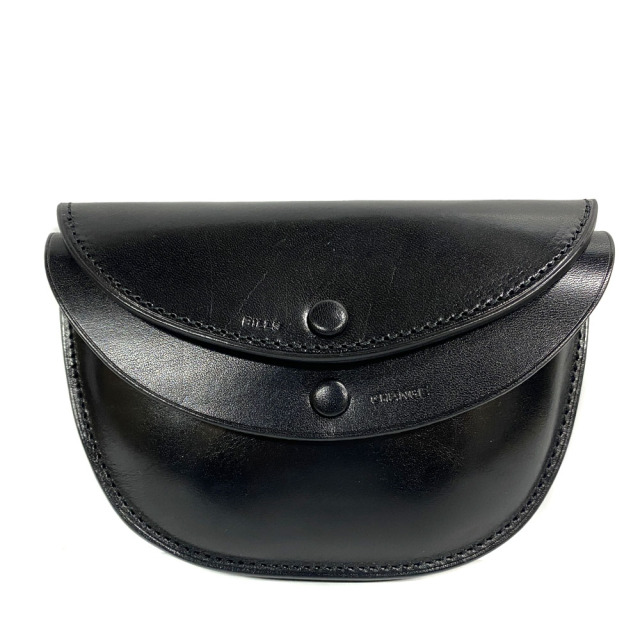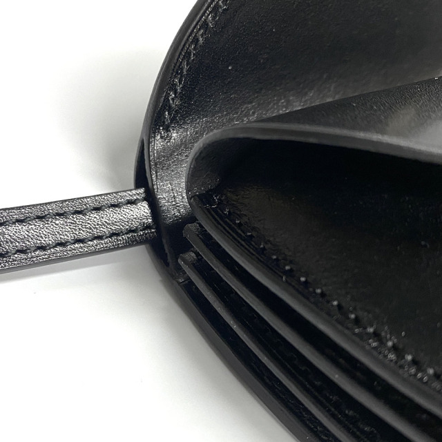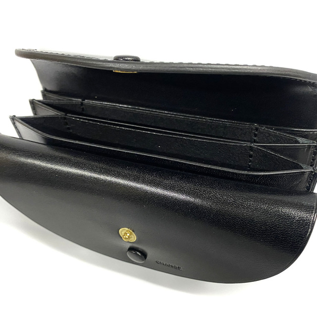 付属のレザーコードを付けることでポーチとしても使用することができるラウンドウォレット。蛇腹のようなポケットにすることで、収納力を増やしています。