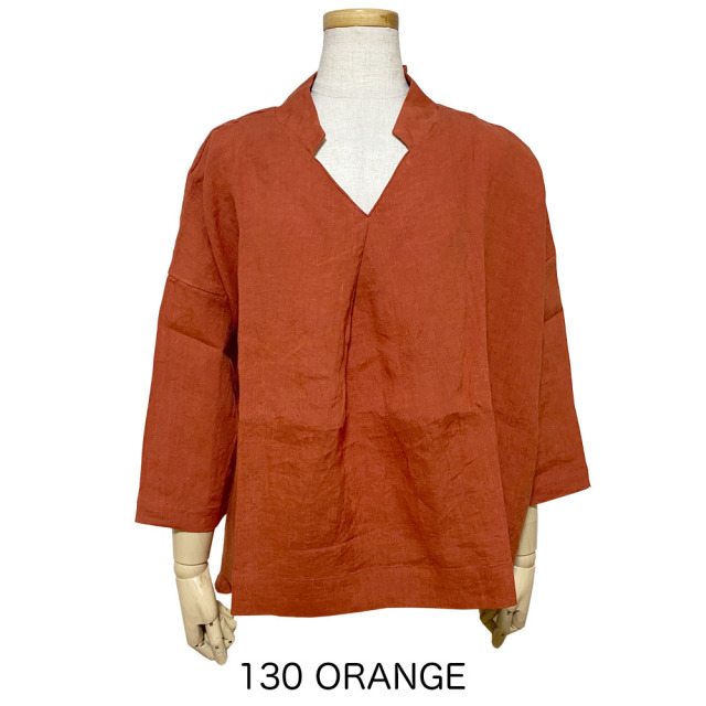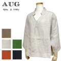 軽さがある適度な厚みと上品な光沢が贅沢なリネン生地のブラウス。AUGらしいきれいなカラーを揃えました! 1枚でも着れる浅めVネックで、すっきりとした印象をプラスしながら抜け感を演出。 裾に向かって広がるAラインと裾のラウンドもポイントです。後ろが少し長めの丈感で、さりげなくヒップラインもカバーしてくれます。 フロントに斜めタックを入れることで、しっかりと立体感の出るシルエットのトップスに仕上げました。 麻100%なので、通気性が良く、夏でも涼しく過ごしていただけます。