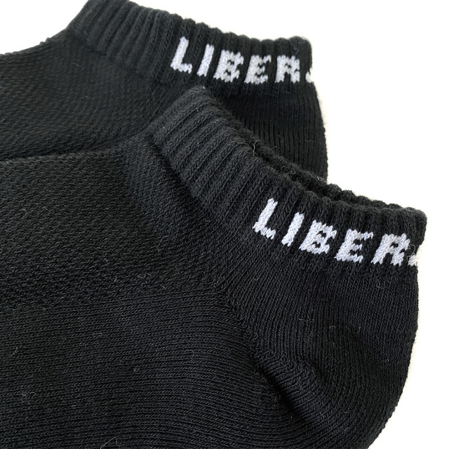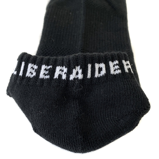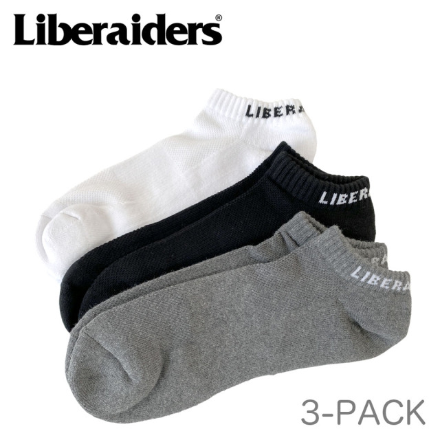 通気性に優れた編み目を採用したアンクルソックス。 履き口にはLiberaidersのロゴが後にかけ入ります。 お得な3PACK。