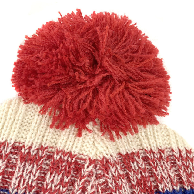 まだら模様のラインがデザインされたニット。 折り返し部分が少し太く、かぶり心地はやわらかいため、ゆったりとかぶりたい方におすすめ。 ボディカラーがナチュラルなので、落ち着いた色味になりがちなアウターファッションのなかでも、明るい挿し色になれるニットです。
