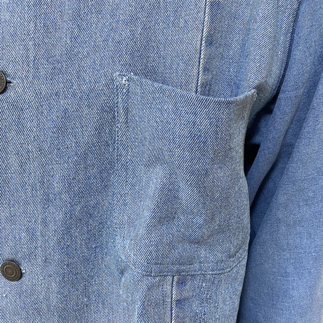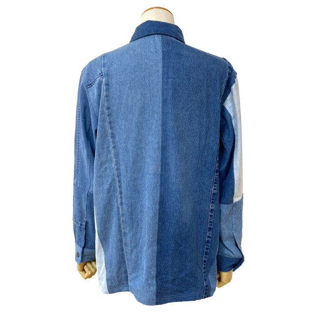 usedのウェアをバラし、パッチワークリメイクしたカバーオールジャケット。 濃淡のあるインディゴのパッチワークはシンプルながらもデザイン性もあります。