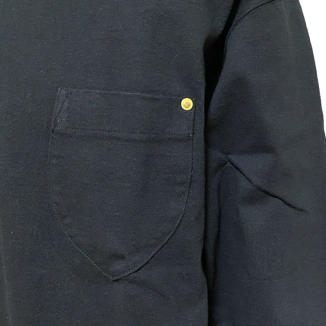 ANACHRONORMでは定番の、真鍮リベットがアイコニックなポケットT-Sです。ANACHRONORM別注で長年生産している高密度天竺。高い密度で編み立てることで、ハリのあるヘビーウエイトとなっています。