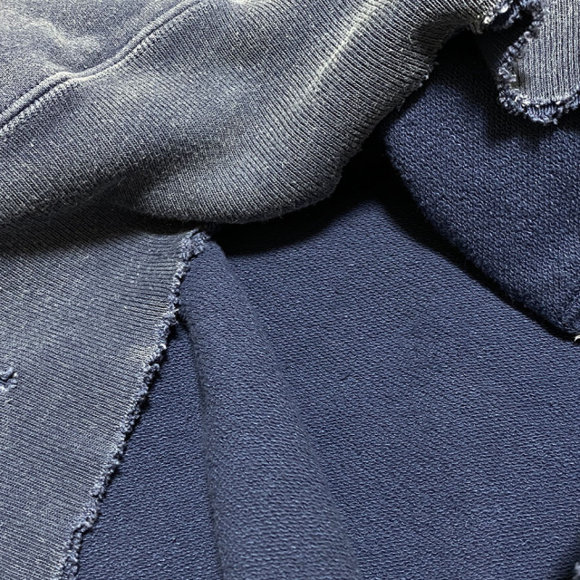 フードをカットオフしたスウェットパーカー。